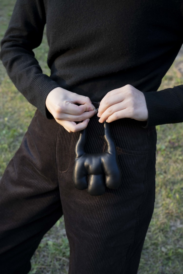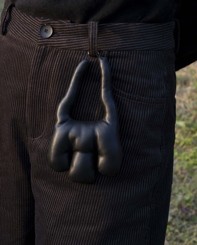 Inspired by the shape of a hand, this keychain is crafted with a soft, tactile finish.