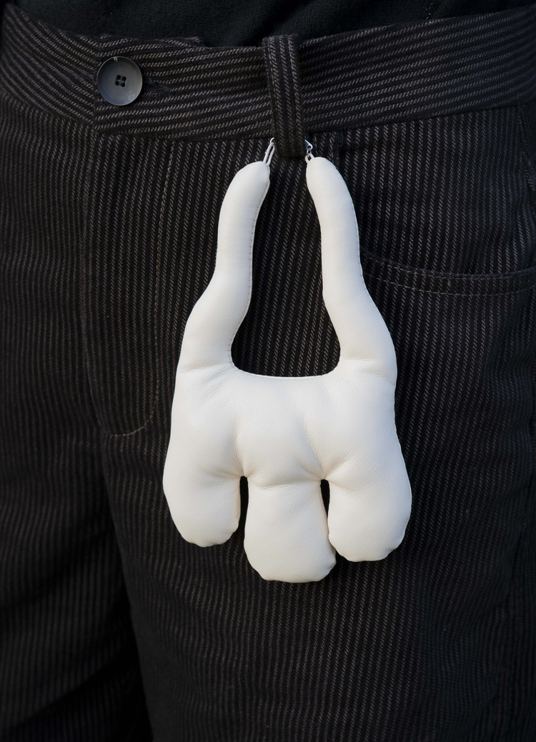 Inspired by the shape of a hand, this keychain is crafted with a soft, tactile finish.